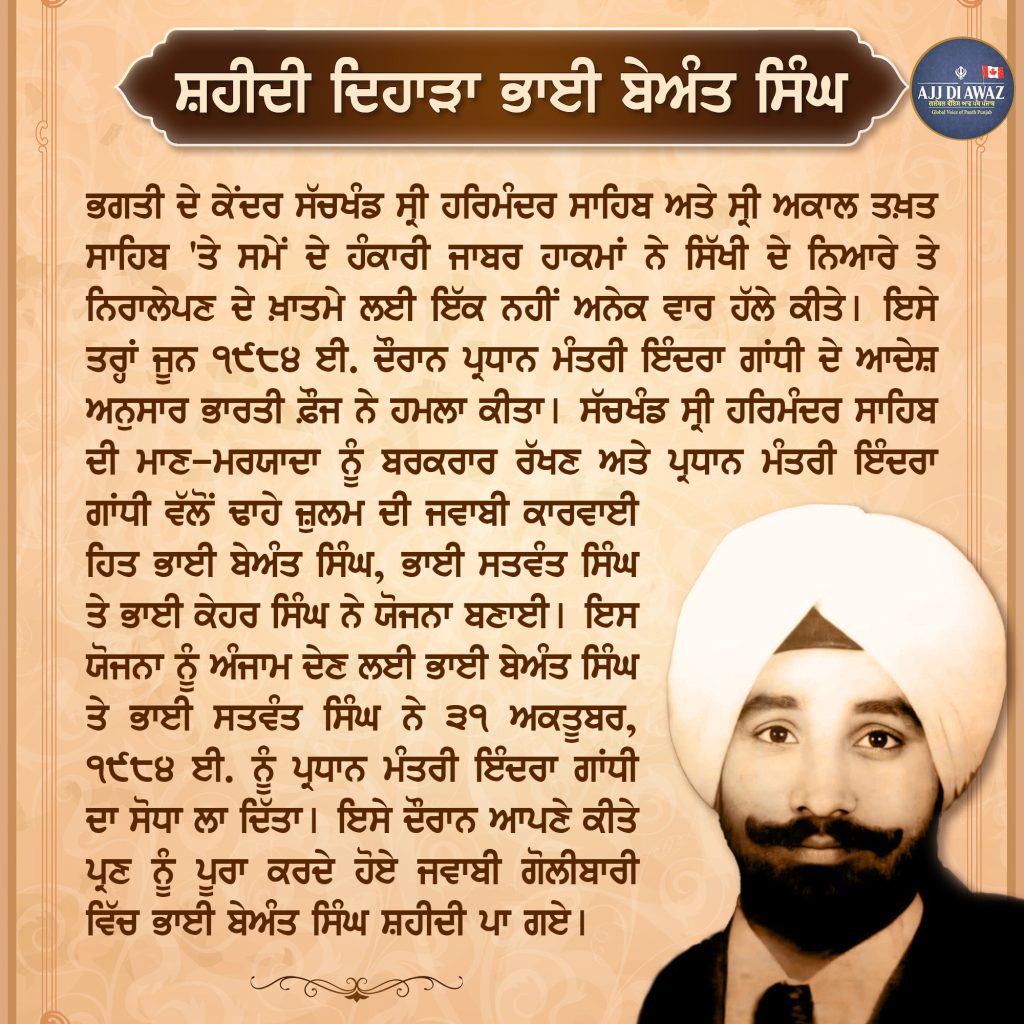 ਸ਼ਹੀਦੀ ਦਿਹਾੜਾ ਭਾਈ ਬੇਅੰਤ ਸਿੰਘ ਜੀ