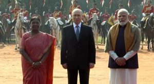ਰੂਸ ਦੇ ਰਾਸ਼ਟਰਪਤੀ ਵਲਾਦੀਮੀਰ ਪੁਤਿਨ ਦਾ ਇੱਥੇ ਪ੍ਰਧਾਨ ਮੰਤਰੀ ਨਰਿੰਦਰ ਮੋਦੀ ਨਾਲ ਸਿਖਰ ਵਾਰਤਾ ਤੋਂ ਪਹਿਲਾਂ ਸ਼ੁੱਕਰਵਾਰ ਨੂੰ ਰਾਸ਼ਟਰਪਤੀ ਭਵਨ ਦੇ ਫੋਰਕੋਰਟ ਵਿਖੇ ਰਸਮੀ ਸਵਾਗਤ